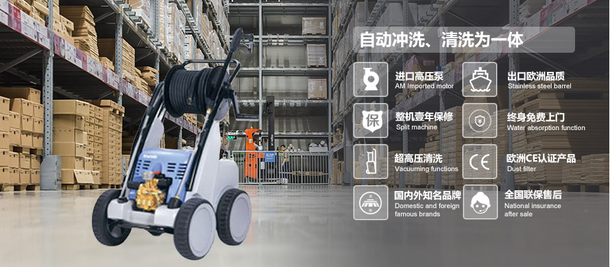高压清洗机拥有高压冲洗、高压清洗功能等。高压清洗机又分为电动高压清洗机、汽油高压清洗机、柴油高压清洗机、冷水高压清洗机、热水高压清洗机、防爆高压清洗机等。高压清洗机一般适用于洗车行业、造纸行业、造船行业、化工行业、机械行业、环卫行业等诸多领域。应用范围有各类金属容器、管道及车辆、船舶、钢质表面的清焦、除锈、排堵、剥层、除漆、除脂;铸件清砂,混凝土冲毛,水泥厂结皮清洗。